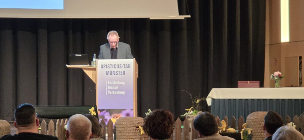 Ein emotionaler Höhepunkt unmittelbar nach der Eröffnung war die Würdigung herausragender Verdienste um das Imkerwesen. Hubert Otto aus Höxter wurde unter großem Applaus geehrt. Sein Wirken verbindet handwerkliche Tradition mit modernem Verbandsmanagement: