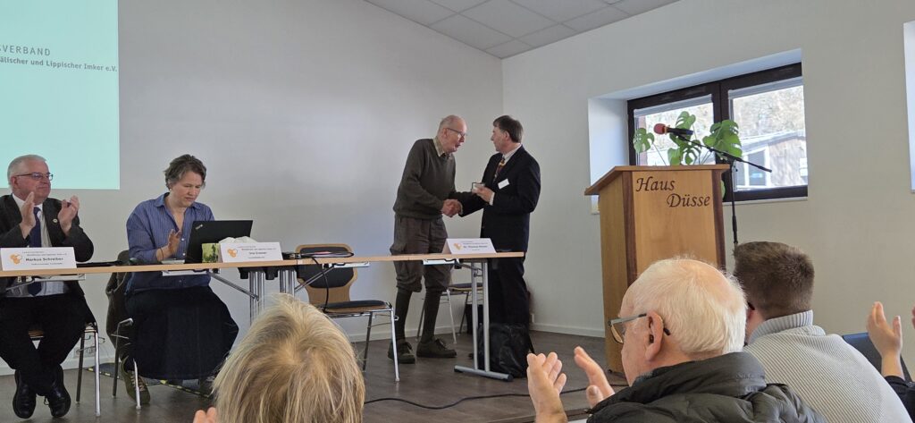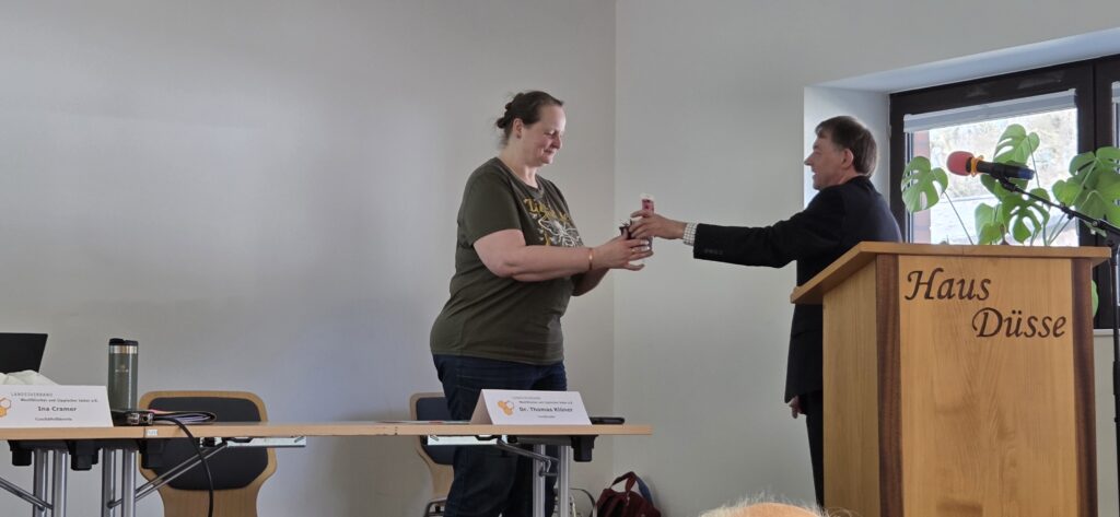 Ein besonderer Dank galt dabei allen Mitstreitern, Vorstandskollegen und Obleuten des Landesverbandes. Dr. Klüner betonte, dass die Fachbereiche – von der Bienengesundheit über die Zucht bis hin zur Öffentlichkeitsarbeit – das fachliche Rückgrat des Verbandes bilden und die enorme Arbeitslast im Ehrenamt oft im Hintergrund geschultert wird.
