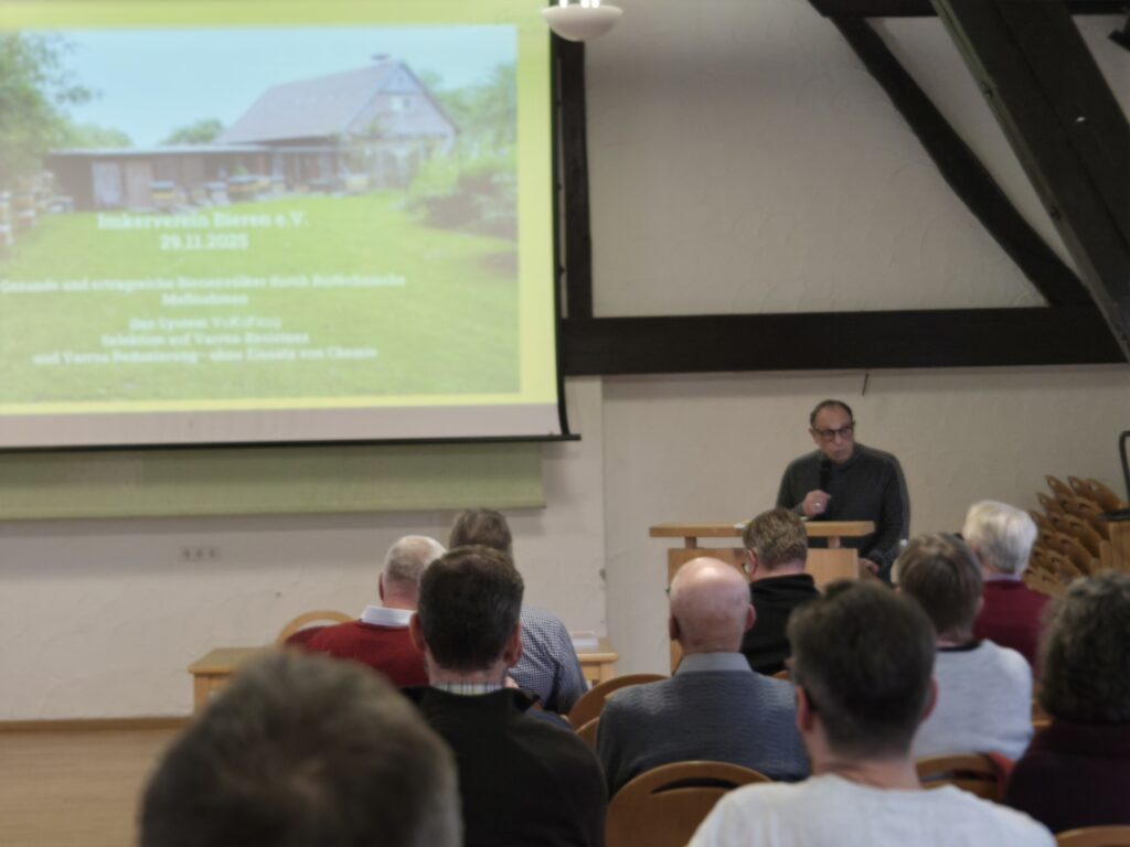 Resistenzen im Bienenstock und Rückstände im Honig? Das muss nicht sein. Beim Imkerverein Bieren drehte sich am 29. November alles um eine biotechnische Innovation, die das Potenzial hat, die Spätsommerpflege grundlegend zu verändern. Referent Werner Gerdes präsentierte im Bürgerzentrum Rödinghausen sein „VaKoFang“-System – und lieferte Antworten auf eine der drängendsten Fragen der modernen Imkerei.