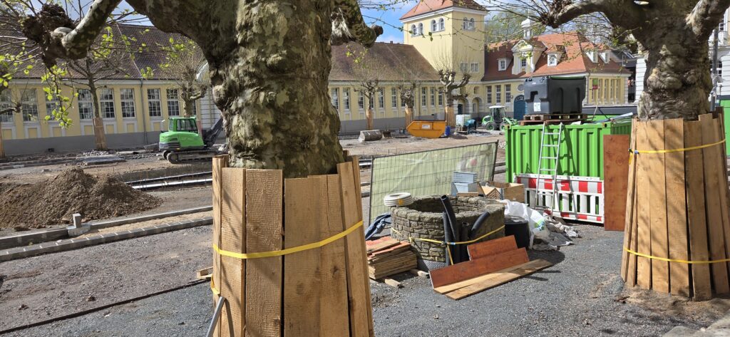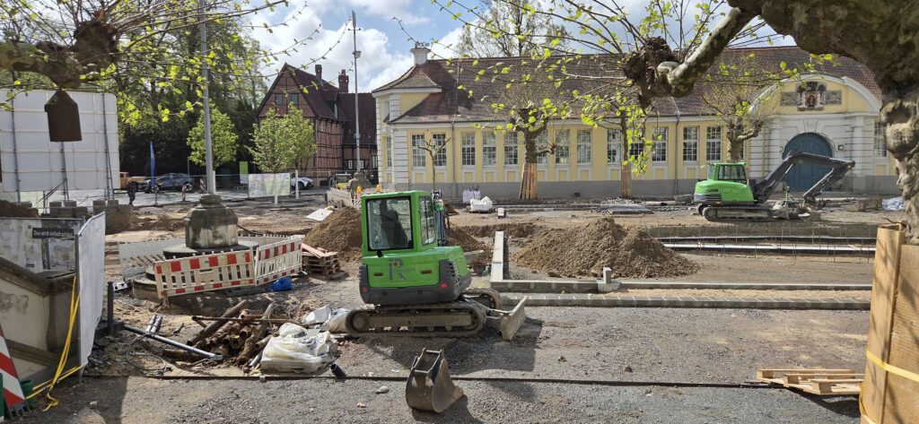 Ein Bild des Herforder Rathausplatzes während umfangreicher Bauarbeiten. Quelle: Eigener Bericht. Autor: Rainer Rockstroh. Lizenz: Alle Rechte vorbehalten.