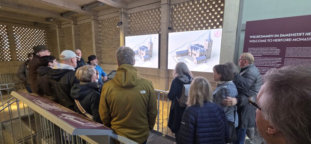 Ein Vormittag mit Mathias Polster ist wie ein Blick in ein perfekt ausgebautes Bienenvolk: Überall entdeckt man faszinierende Strukturen. Der Imkerverein Herford traf sich am 18.04.2026 zur Innenstadtführung mit Mathias Polster. Begleiten Sie uns auf diese Tour durch die Hansestadt, bei der uns erzählt wurde, warum das Rathaus einem Schloss gleicht, warum die Äbtissinnen vermutlich die größten Honig-Händlerinnen der Region waren und was das alles mit unserem flüssigen Gold zu tun hat.